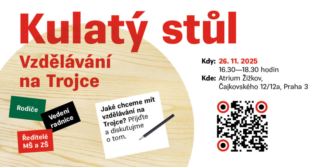 Městská část Praha 3 zve všechny rodiče, učitele i další zájemce o vzdělávání na Kulatý stůl, který se uskuteční ve středu 26. listopadu 2025. Akce pořádaná v rámci projektu MAP Praha 3 nabídne prostor pro otevřenou debatu o tom, jak by mělo vypadat současné i budoucí vzdělávání v naší městské části.